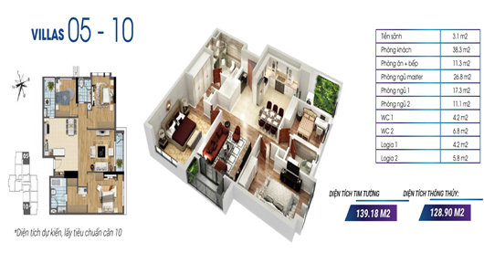 • Căn 139m2: Căn số: 4, 5, 9, 10 thuộc tòa Ruby 1 và Sapphire 1, 2