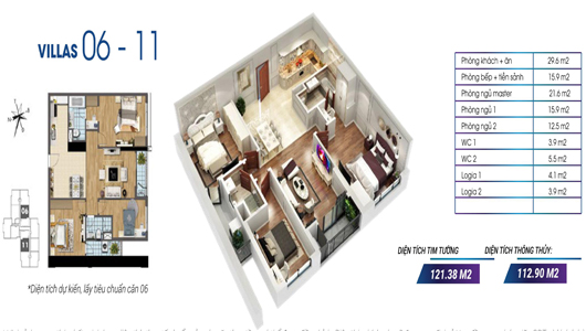 • Căn 121m2: Căn số: 6, 8, 11 thuộc tòa Ruby 1 và Sapphire 1, 2