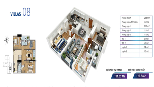 Căn 06,08,11: 121,64m2